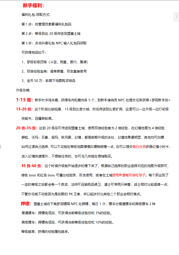 礼包码:mh666 (比奇大城npc,领取福利)